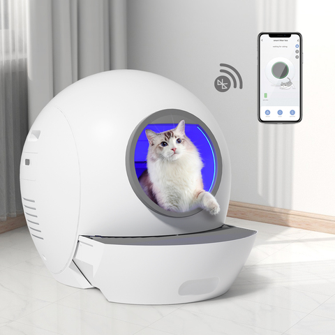 Caja de arena para gatos de autolimpieza inteligente controlada por aplicación, inodoro automático de plástico para gatos